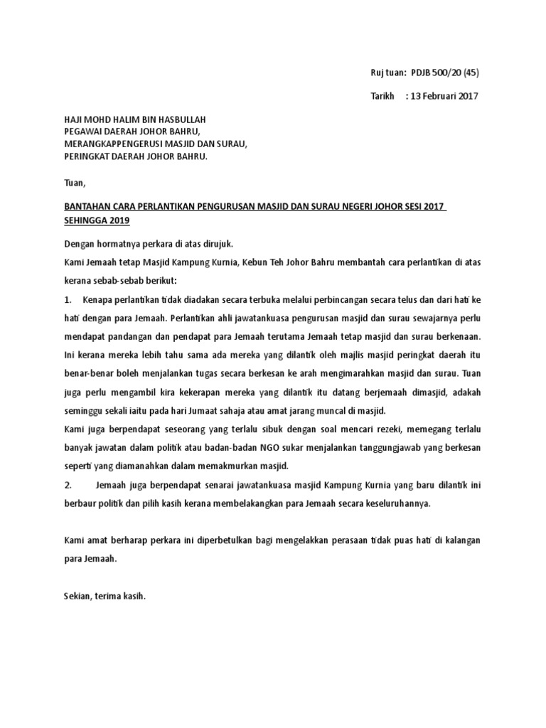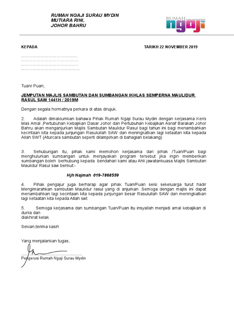 Contoh Surat Permohonan Kebenaran Menggunakan Surau